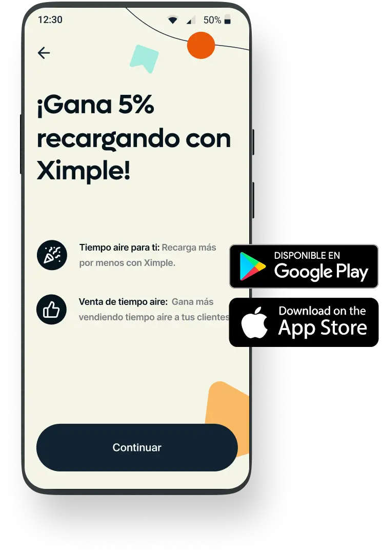 Descarga Ximple ahora y haz tu primera recarga en menos de 1 minuto.